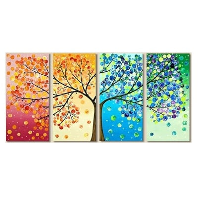 Cet ensemble de quatre peintures sur toile décorera à merveille votre chambre ou votre salon. L'Arbre de Vie y est représenté sous les quatre saisons, offrant un rendu coloré absolument magnifique !